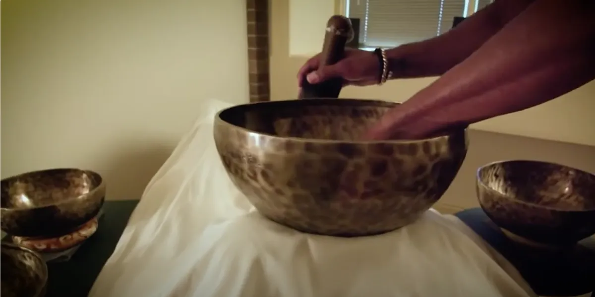 You lie comfortably while instruments such as bowls, gongs, and chimes create sound textures designed to support rest and coherence.